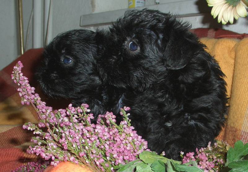 Bijou erwähnt. Golon Anne schrieb den Roman Angelique - dieser Name weckt in Millionen von Lesern und Kinogängern in aller Welt Erinnerungen an das Mädchen im Paris Ludwigs des XIV und zeigt uns im 7. Kapitel, dass bereits in dieser Zeit der Affenpinscher eine Rolle im Leben des Königs spielte:" Das Schloss war aus seinem Zauberschlaf erwacht. Nachdem der Baron und seine Tochter ihre Tiere beim Verwalter Molines eingestellt hatten, schritten sie die Hauptallee entlang. Musikklänge wehten ihnen entgegen. Rassige Windhunde und reizende Affenpinscher tollten auf den Rasenflächen umher." 8. Kapitel Angelique setzte sich auf die unterste Stufe der Freitreppe und wartete auf ihren Vater. Mit einem Male kam es ihr vor, als sei sie jeglichen Gedankens, jeglichen Willens beraubt. Ein kleiner weißer Affenpinscher kam heran und beschnüffelte sie. Sie streichelte ihn mechanisch. Auch Theodor Fontane berichtet in seinen „Wanderungen durch die Mark“ von seinen Erlebnissen mit Affenpinschern im Treptower Park im Restaurant „ Zenner“. Und große Maler wie Albrecht Dürer und Jan von Eyck zeigten den Affenpinscher im 15. und 16. Jahrhundert auf ihren Gemälden. Heute ist der Affenpinscher eine Rarität unter den Hunden geworden. In seiner äußeren Erscheinung ist er seinen früheren Verwandten weitgehend ähnlich geblieben. Auf Ausstellungen kann man diese Hunderasse nur sehr selten bewundern. Die Affenpinscherzucht wird in Deutschland nur von wenigen Züchtern gepflegt und ist trotz der Bemühungen zum Erhalt des Affenpinschers vom Aussterben bedroht. Die sehr geringen Wurfzahlen mit einer Anzahl von durchschnittlich drei Welpen machen es der Rasse schwer, verantwortungsbewusste Züchter zu finden. In diesem Jahr kam es in meinem Zwinger „vom Butzemannhaus“ zum sensationellen Wurf von sechs Affenpinscherwelpen, die ohne Verluste aufgezogen wurden. (Foto: Creativ Studio)