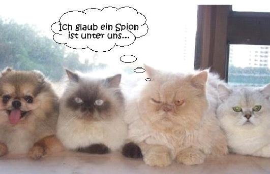 Katzenjammer um Agent 005 Es schrieb ein Mann an eine Wand: Zehn Finger hab ich an jeder Hand fünf und zwanzig an Händen und Füssen. Wer das liest, muss zu Lesen wissen. Es kann ja nur so sein, das ich mit Beginn der Hitze meiner Fusselfrieda fünf Freunde oder Bekannte angerufen habe, die sich bereit erklärt hatten so einen kleinen Affenpinscher für eine gewisse Zeit mal zu beaufsichtigen. Während ihrer „heißen Zeit“ hörte ich dann die coolsten Absagen, warum eine Gastfreundschaft gerade jetzt überhaupt nicht möglich war. In letzter Not probierte ich mein Glück bei einer jetzt katzenlastigen Familie, die vor gewisser Zeit einmal Hunde hielten. Ich hatte Glück, also nicht gleich eine Absage, sondern die Möglichkeit bei einer Tasse Kaffee den Burgfrieden 4 Katzen gegen einen Affenpinscher zu testen. Also leicht fiel es mir nicht, nachdem der erste Kater namens Panter vor der Balkontür erschien, die Ruhe zu bewahren. Nachdem ihm die Tür geöffnet ward, sprang er mit einem Satz auf den Tisch, ein Auge zukneifend besah er sich den Eindringling auf meinem Schoß. Ich glaube Frieda hat in diesem Moment auch den Atem angehalten. Galant veränderte der Kater seine Pose und schreitete erhobenen Hauptes zu seinem Fressnapf. Ohne uns noch einmal eines Blickes zu würdigen sprang er dann müde auf die Sofalehne und schlief. Das war allerdings nur der erste kleine Schreck. Geweckt durch die Ankunft seines Wohnungsgenossen, strampelte sich ein weiterer Kater mit dem niedlichen Namen Killer aus den Sofakissen neben mir. Nachdem er sah, was auf meinem Schoß saß, glitt er geschmeidig vom Sofa um die Sache auf 2 Beinen stehend zwischen Sofa und Sessel lümmelnd genauer zu prüfen. Auch diesen Test überstanden wir mit Herzrasen. Es war ja nichts weiter geschehen, als das zwei Riesenkatzen mein Hündchen „übersahen“. Der Rest ist nicht mehr so schlimm es sind nur noch 2 kleine Katzen und die tun Deinem Hund nichts sprach die Hausherrin freundlich. Und wie auf Kommando erschien Paulchen auf der Bildfläche, niedlich, klein, handlich, aber der Schwanz! Ich glaube, der war bald doppelt so dick, wie Klein-Paulchen. Die vierte Kostprobe katzigen Könnens wollte ich dann doch nicht mehr persönlich erleben. Die Familie behauptete, das Eis wäre gebrochen. Frieda hat gegen die Königstigerlein gewonnen und nun kann sie bleiben. Ein leichter Sieg, ohne Kampf und das bissel Herzrasen ist gut für den Kreislauf und bringt den Adrenalinspiegel auf Trab. Beinah 20 Tage hat Frieda im Katzenhaus verbracht, sie hat sich mit den Katzen vertragen. Da diese im Bett schliefen undFrieda auch diesen Platz beanspruchte, schlief sie eben Seite an Seite mit einer ihr völlig fremden Tierart. Sie naschte auch mal Katzenfutter und die Katzen kosteten das Hundefutter, beide Arten bekamen dadurch kurz mal dünnen Stuhlgang aber was macht das schon aus unter Freunden. Heute habe ich meine Hündin zurückgeholt. Es ist kaum zu glauben, Max der Kater (der Vierte Hausbewohner) begleitete uns noch bis zur Hausecke, blieb dann dort sitzen und miaute. Vielleicht mahnte er seine Katzenmama, die uns noch ein Stück bis zur Bushaltestelle brachte, sich nicht zu weit vom Katzenrevier zu entfernen? Vielleicht war es auch eine Drohung für Fusselfrieda, komm gar nicht wieder hierher? Vielleicht fand er das Leben gemeinsam mit einem Affenpinscher auch aufregend genug, um ihm aus lauter Freundschaft hinterher zu miauen.