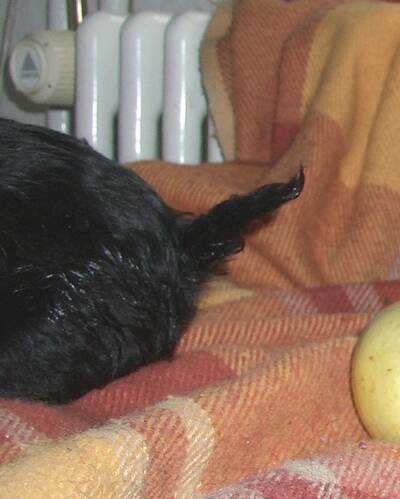 Giuseppe-Seppl mit seinem Gipsbein Manchmal muss es eben Mumm sein …. Ein Wunsch, sobald er sich erfüllt hat, kriegt augenblicklich Junge. W. Busch Auf der Zugfahrt nach Duisburg beschäftigte mich nur ein einziger Wunsch. Möge der Deckakt dieses Mal erfolgen. Der Rüde ist gesund und wird sehr gut gehalten. Er lebt ein hervorragendes beinah stressfreies Hundeleben und seine Sexualität sollte im besten Pegel sein. Die Hündin ist am Höhepunkt ihrer Hitze. Gleiche beste Bedingungen wie am Mittwoch bei Perle. Und dennoch war es am Mittwoch nicht zu dem erwünschten Deckakt gekommen. Ratzedibutz. Wir waren noch keine zehn Minuten mit Fusselfrieda in der Wohnung der Deckrüdenbesitzer, da hatte sich Braveheart bereits als Deckrüde bestätigt und nicht eine Minute verbummelt. Manchmal muss es eben Mumm sein. Auf der Rückfahrt kreisten meine Wünsche dann schon in ganz andere Richtungen. Ich wünsche mir, dass die Hündin ohne Komplikationen über die Trächtigkeit, Geburt und Welpenzeit kommt. Ich wünsche mir gesunde, lebende Welpen und eine nahezu problemlose Aufzucht. Ich wünsche mir sehr gute Welpenkäufer, die zur richtigen Zeit an mein Türchen klopfen. Das der Deckakt bei Perle nicht vollzogen wurde, hatte seine Gründe. Ich glaube sogar, sie benennen zu können. Es ist in Ordnung, so wie es jetzt ist. Manchmal muss es eben Mumm sein. Die Bilder bestätigen, die gegenseitige Herzlichkeit des frisch getrauten (mit diesem Wort wähle ich bewusst die Steigerung… trauen, Vertrauen und Selbstvertrauen) Paares. Braveheart ist im wahrsten Sinne des Wortes wieder einmal unter die Haube gekommen. Der Großvater Orlando lächelt wissend unter seiner Kappe und hält seine Erfahrungen bedeckt. „Wer keine Sorgen hat, der macht sich welche“. In wenigen Tagen ist Fastnacht die 5. Jahreszeit, darum hat er sich als Teletubby geschmückt. Na dann Hellau nach Dinslaken und herzlichen Dank.