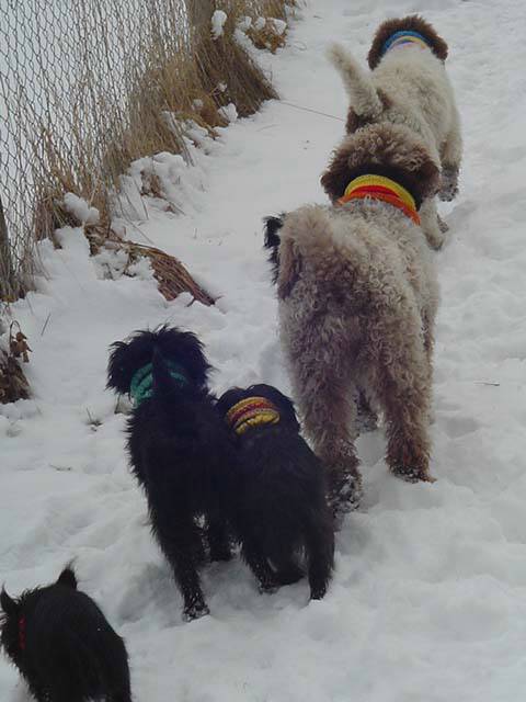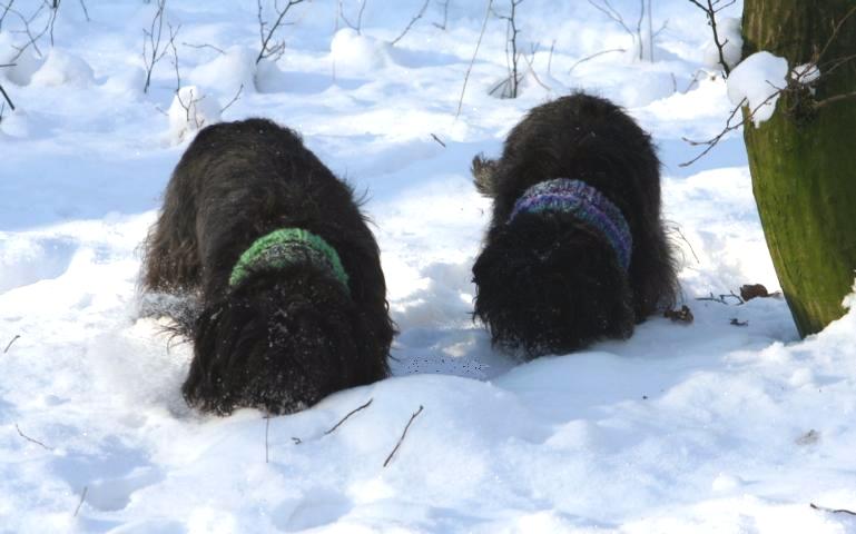 Lakritznase Braveheart Lakritznase Braveheart mit seinem Vater Orlando v.d.Folgenquelle Droben auf den Bergen liegt der wi-wa weiße Schnee … Das konnten auch einige Butzemänner nachprüfen und genießen. Cavalier Dolce Vita war mit ihrem Frauchen beinah vier Wochen in den Bergen um neue Kraft und frischen Mut zu schöpfen. Affenpinscher Cha Cha Cha bekletterte trotz Eis und Schnee gemeinsam mit Frauchen und einem Bergführer die Gipfel eines Berges in der Schweiz und Cavalier Rocky tauscht seinen Garten in dem bis zu 80 cm Schnee liegen mit dem Vogtland um sich bei langen Schneewanderungen gemeinsam mit seiner Familie zu vergnügen. Die Affenpinscher Perle und Frieda haben in dieser Woche auch eine weite Reise vor sich. Es geht zum Braveheart an den Rhein nach Duisburg. Dort wird es sich wieder zeigen, ob der Vater vieler meiner Nachzuchttiere auch diesmal züchterisch zum Einsatz kommt und im April die nächsten Affenpinscher Butzemänner geboren werden. Auch wenn ich den feschen Rüden mit Schwiegermutteraugen ansehe, ein Naturbursche, der nicht durch ein zivilisiertes Aussehen verdorben wurde und von einer Ausstellung zur anderen getrieben wird. Und ich mir sehr sehr Welpen von ihm und meinen Hündinnen wünsche, kann es doch sein, das meine arroganten läufigen Hündinnen ganz anderer Meinung sind und den armen Rüden raffiniert und ohne tiefere Skrupel patzig begegnen oder ihn schnurstracks runterputzen. Alles schon erlebt und viele Pointen schmücken auch das Hochzeitsverhalten der Hunde. Und dann fangen die Geschichten erst richtig an. Wie wird die Zeit der Trächtigkeit, wie verläuft die Geburt? Welche Sorgen bringt die Aufzucht und Fürsorge für Muttertier und Welpen. Ein Welpe im Wurf ist oft problematisch, aber auf einen Wurf mit 6 Affenpinschern auf einem Streich kann ich auch dankend verzichten. Ich wünsche mir, dass ich besonnen genug bin, um den Tieren ein guter Helfer zu sein. Ich fühle mich beschenkt, wenn die Hündinnen natürlich Werfen, dabei selbst gesund bleiben und gesunde rassetypische Welpen zur Welt bringen. Ich vertraue auf die Güte von Mutter Natur und hoffe auf ihren Segen.