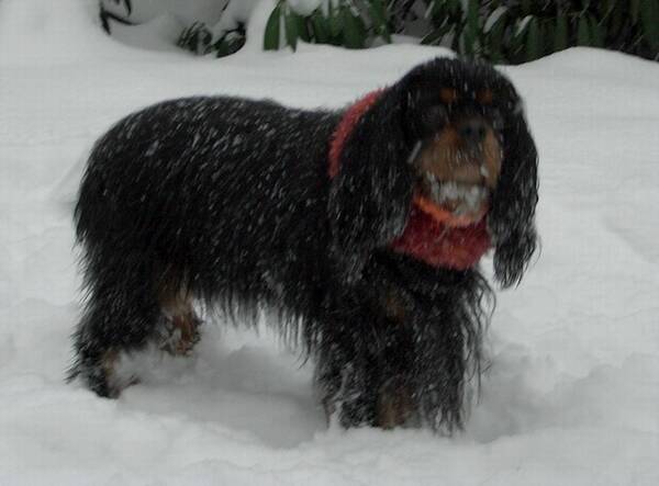 liebe Grüße Altersgerechtes Wohnen (Geschichte von D. Braun) Mein ältester lebender Cavalier ist heute 11 Jahre alt geworden. Er hat die normale Lebenserwartung eines Cavalier King Charles Spaniel mehr als überschritten. Nein, er möchte kein Schloss. Für ihn besteht altersgerechtes Wohnen in einer einzigen Grundvoraussetzung, Badezimmer mit Kühlschrank!!! Und das ist die Geschichte, die sein Frauchen für ihn geschrieben hat. Ganz, ganz lieben Dank. Heute kam das Geburtstags-Paket für Gianni hier an. Die Halswärmer sind wirklich toll, Gianni hat den Wärmer mit dem dicken Diamanten schon um und fühlt sich cavalierwohl. Ich freue mich, dass er mit seinen 11 Jahren noch munter und fröhlich ist. Das mit dem Hören ist, glaube ich keine Taubheit, das ist Altersstarrsinn! Wenn er nicht hören will, dann hört er nix . Habe hier mehrere Test gemacht und da bin ich der Meinung, er hört sehr gut, er will nur manches nicht mehr hören ...besonders wenn ich ihn rufe und er gerade ganz wichtig was draußen im Schnee findet! oder er sich ganz gemütlich auf seine Decke gerollt hat und ich ihn rufe zum Kämmen z.B. Anders ist es, wenn ich in der Küche stehe und ihn rufe, er sieht mich ja dann nicht, kommt aber sofort. Wenn ich im Badezimmer stehe und ihn rufe, dann kommt er nie, da gibt’s ja auch keinen Kühlschrank.Die Knochen sind alt und er ist nicht mehr so wendig, doch wenn hinten am Zaun ein fremder Hund bellt, flitzt er genauso schnell, wie die Havis, dort hin! Ich freue mich einfach, dass es ihm gut geht und er mir hoffentlich noch lange erhalten bleibt. Dagmar und Gianni-Valentino