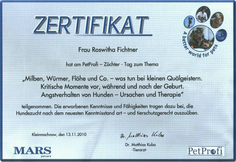 Gestern besuchte ich ein eintägiges Züchterseminar. Sie glauben nicht, was uns Züchtern schon alles erspart geblieben ist und wir sollten dafür von ganzen Herzen dankbar sein. Der Vortrag über die kleinen Quälgeister, die bei unseren Hunden immer wieder auftreten könnten, ohne das ein hygienischer Mangel in der Zuchtstätte zu finden ist war schon etwas heftig, aber die Geburtsstörungen – also das war „Der Hammer“. Man hätte eine Nadel im Raum fallen lassen können und jeder hätte sie gehört. So beeindruckt und dankbar war jeder Züchter, der mit diesen „natürlichen Realitäten“ noch nie in dieser Form konfrontieret war. Welch ein riesiges Geschenk wird uns gebracht, wenn unsere Hündinnen einen normalen gesunden Wurf austragen? Ein Geschenk, das man nicht kaufen kann, ein Geschenk, das Niemand berechnen kann, ein Geschenk das man nur Entdecken, aber nicht Festhalten kann. Etwas was man nicht erlernen aber fühlen kann. Ein Geschenk des Augenblicks der Seligkeit. „Die Wahrheit möge gewinnen, wer immer dabei der Verlierer ist.“ Tief beeindruckt und mit der Hoffnung, dass uns das Schicksal auch weiterhin von diesen Realitäten der Natur verschont, lockerte eine charmante Hundetrainerin mit ihrem Vortrag die gesamte Züchtergemeinschaft wieder auf. Mit schallendem Gelächter befreiten wir uns gegenseitig von der seelischen Last der Bilder des vorhergegangenen Vortrages. Die geistigen Bilder, die diese junge Frau nun in unseren Köpfen malte und mit denen sie auch die verbissenen Züchterseelen angriff. Ironisch, flexibel, sympathisch sprang sie von einer Stufe zur anderen um uns auf Erlerntes und übernommenes Wissen in der Hundeerziehung zu sensibilisieren. . „Die Wahrheit möge gewinnen, wer immer dabei der Verlierer ist.“