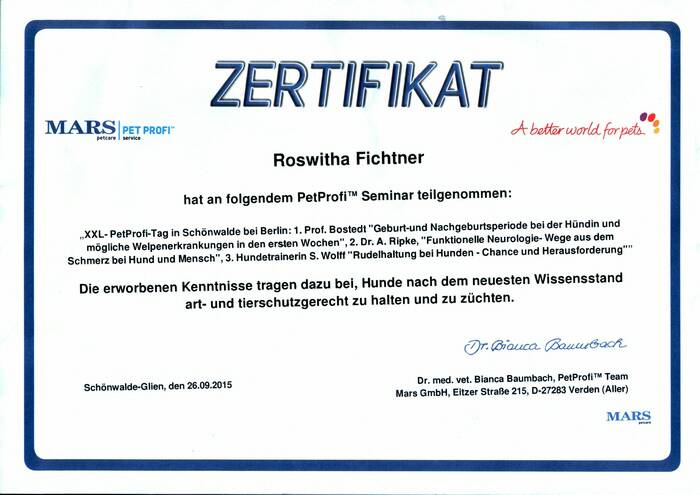 anderen verantwortungsvollen Züchtern steht Ihnen gern zur Verfügung: