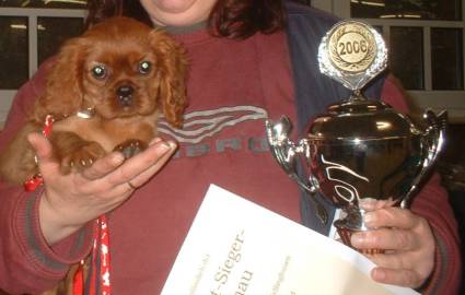| 02.04.2006 | Affenpinscher Yoanita`s Beauty erhält auf der Internationalen Rassehunde- Ausstellung in Berlin in der Offenen Klasse das V1, sowie alle Anwartschaften und die Reserveanwartschaft für das CACIB