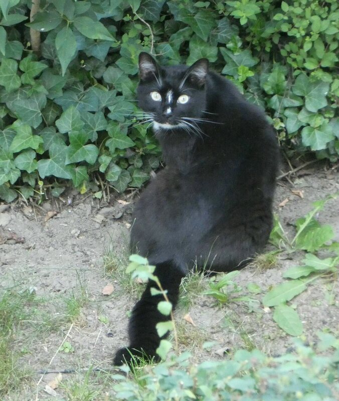 ![]() Freilebende Hofkatze, die überhaupt keine Angst vor den Hunden zeigt |