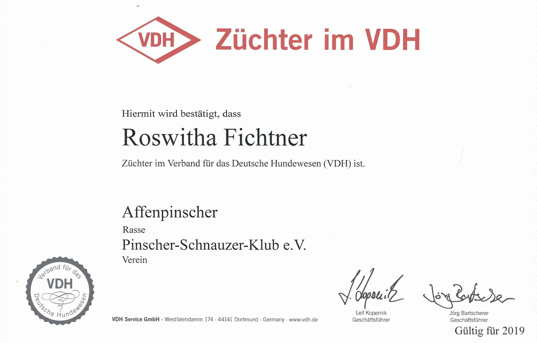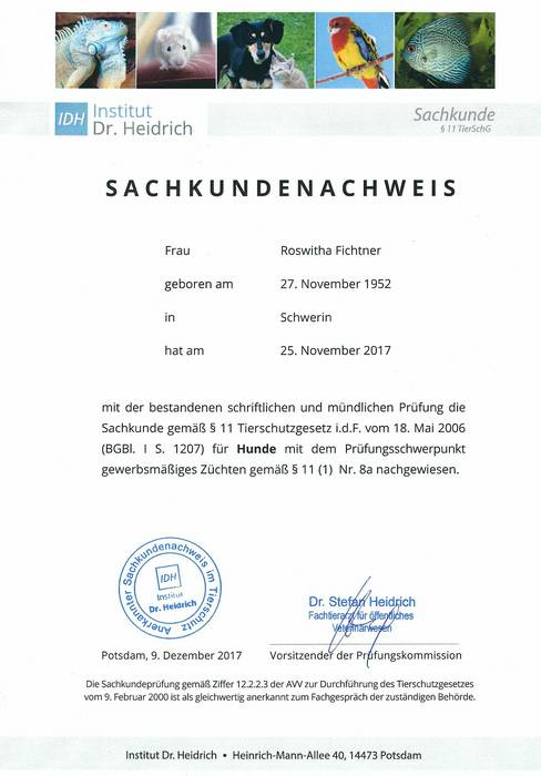 Zwingernamenschutz nochmals bestätigt. Für die Verpaarung hat der
